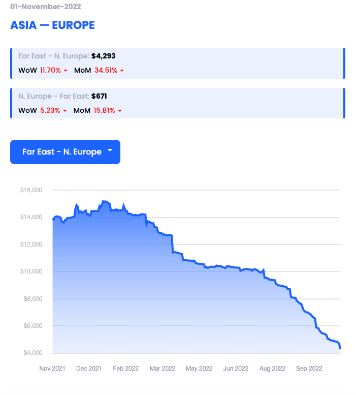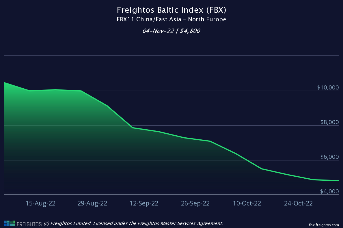 Report a figure of $4,800 per 40’ container (FEU) dated 04/11/22 (down 7% WoW)